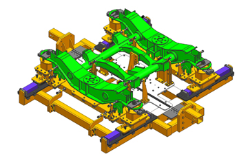 该工装用于200公里火车的构架的横梁和侧梁的组焊,利用了直线导轨进行装配,操作灵活,使用方便,明显减轻的工人的劳动强度。